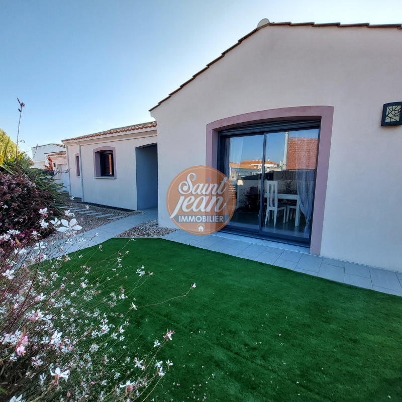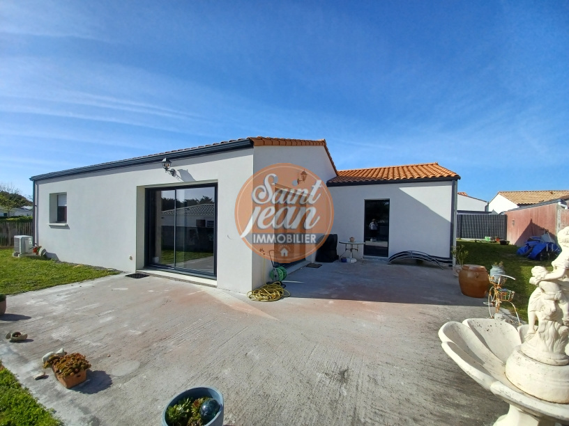Plage à pied, 1 km du centre-bourg, maison de 106 m² : pièce de vie lumineuse (54 m²), cuisine aménagée et équipée, 3 chambres dont 1 avec dressing, cellier, garage. Chauffage au sol, pompe à chaleur, portail automatisé avec visiophone, terrasse exposée sud et terrain clos, vous n'avez plus qu'à posez vos valises pour bénéficier du confort d'une maison neuve aux atouts certains.