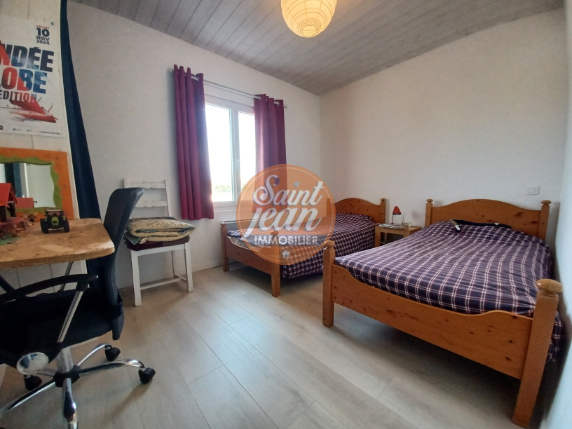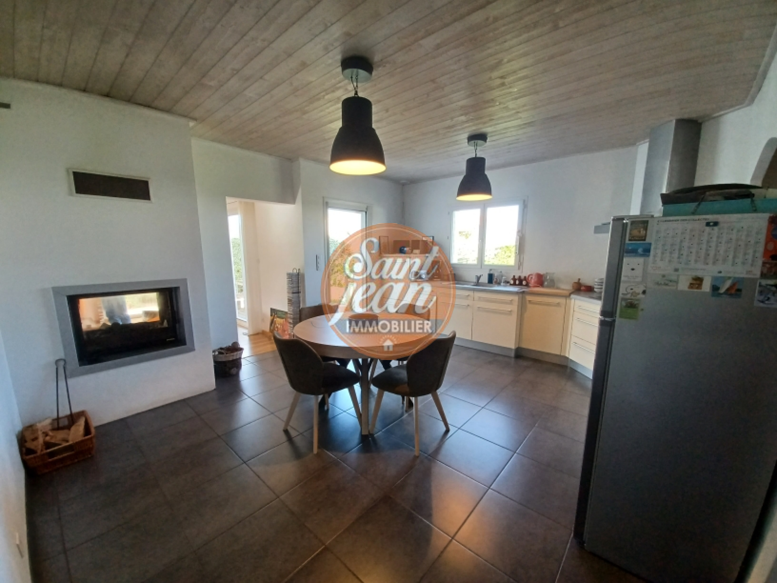 Dans un quartier paisible, proche du bourg, maison récente en parfait état : Cuisine/salle à manger aménagée et équipée, salon chaleureux grâce à sa cheminée insert à double face (donnant également sur la cuisine), 5 chambres confortables, un bureau, salle d'eau avec double vasque et douche italienne, une buanderie, un abri de jardin, un cabanon, un abri bois.