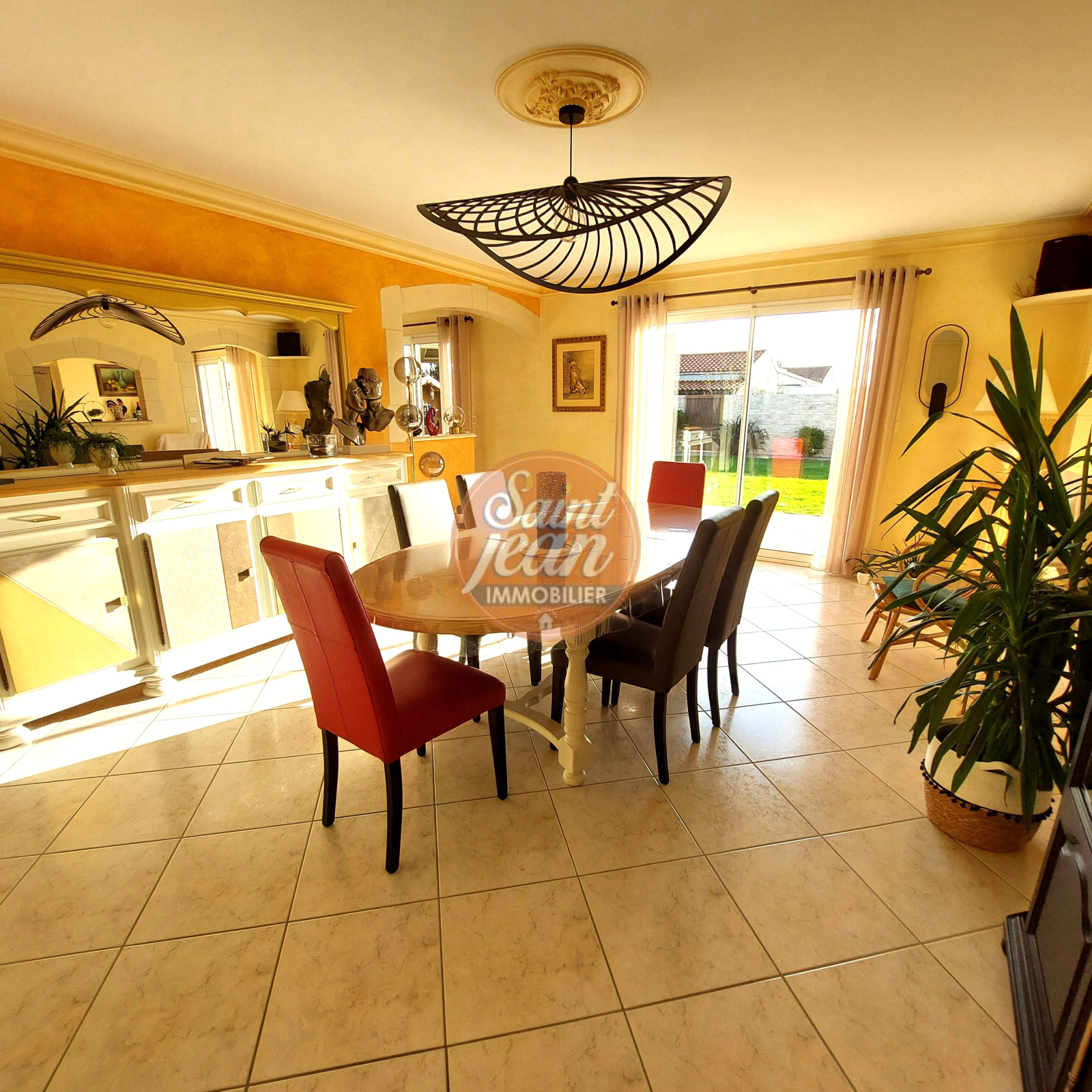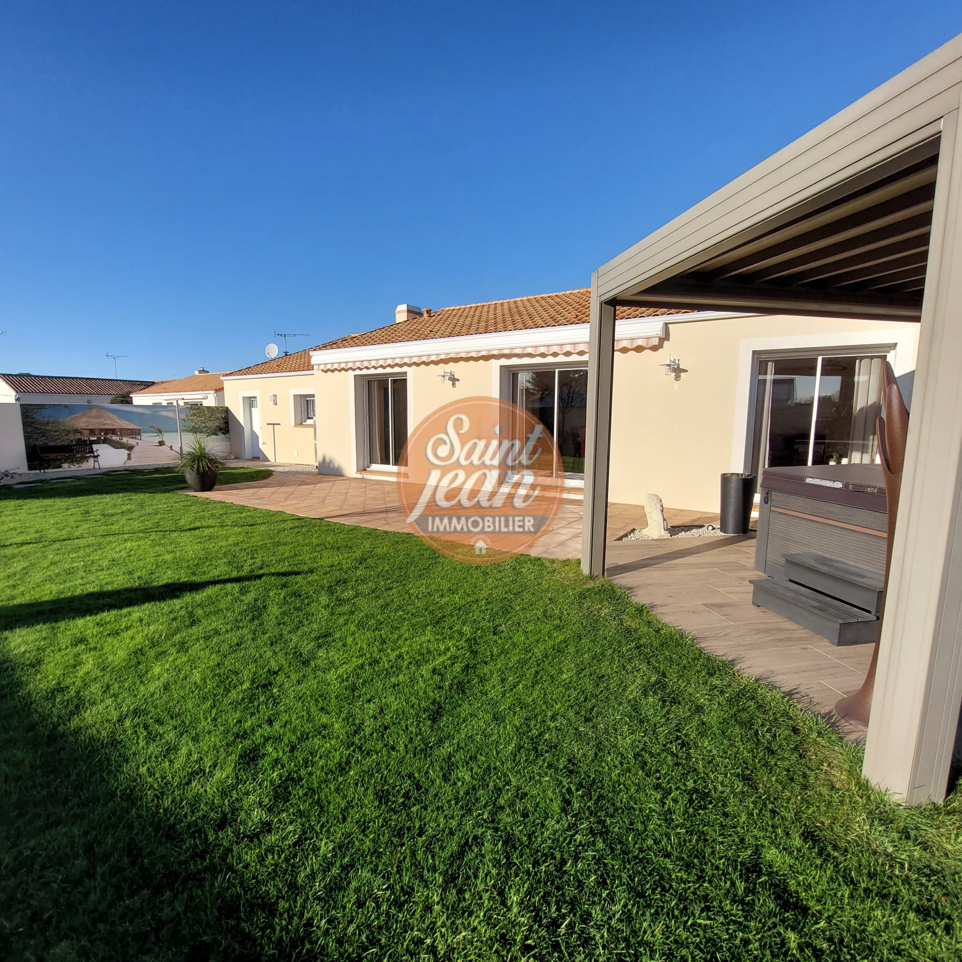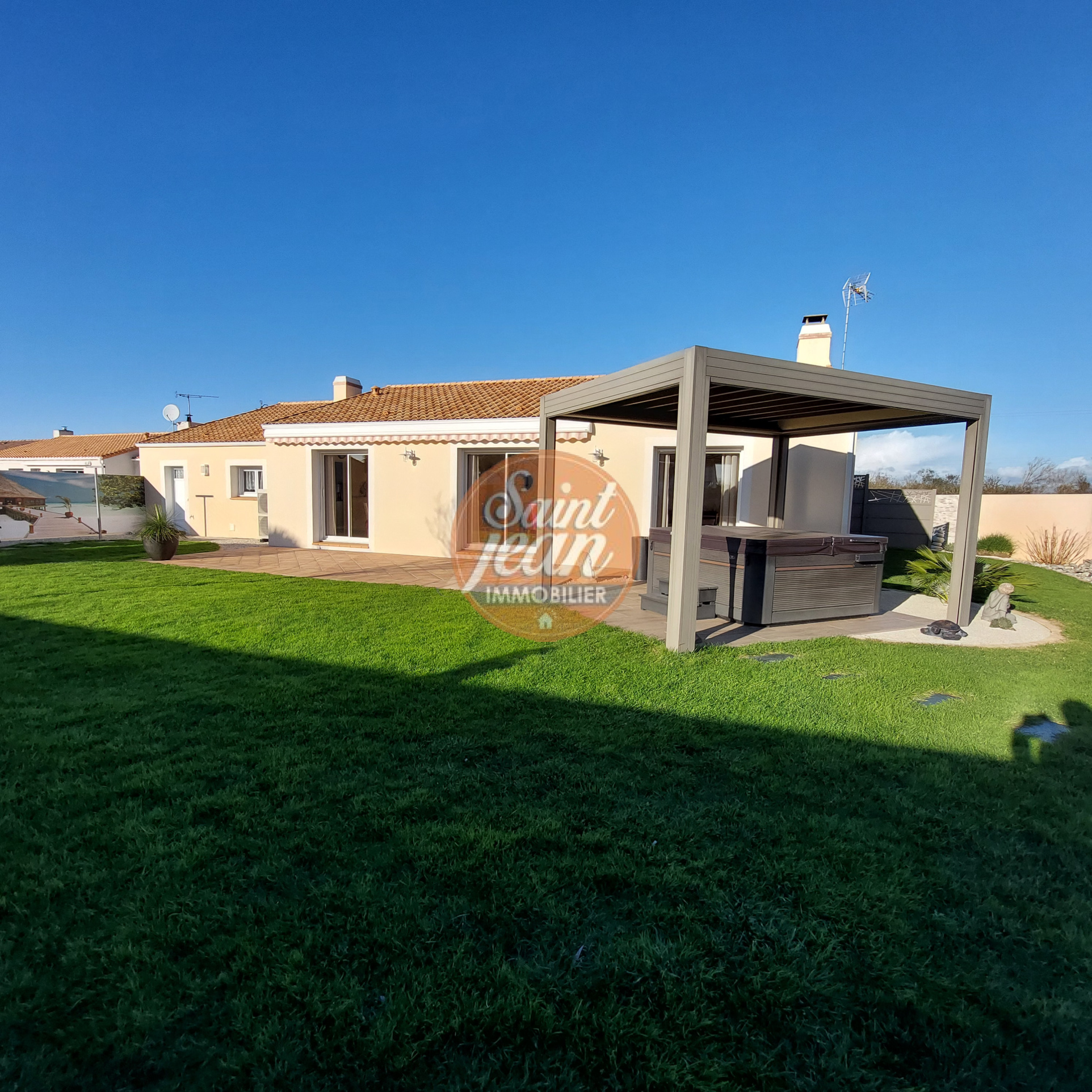 Saint Jean de Monts, situé non loin des commodités dans un lotissement résidentiel paisible, venez découvrir ce pavillon de plain pied de plus de 130 m² alliant volume confort et belles prestations, parfait pour accueillir votre famille .Il se compose d'une spacieuse entrée avec placards, d'une pièce de vie avec son espace salle à manger et son coin salon avec cheminée , très lumineux grâce à leurs expositions plein sud , d'une cuisine semi ouverte équipée aménagée de plus de 14m² , et d'une partie cellier . Il dispose également d'un bureau avec placards, et la partie nuit quant à elle, se compose de trois chambres spacieuses avec placards, d'une salle d'eau avec douche et baignoire, et d'un wc indépendant .Son garage de 49 m² permet stationnement, rangement et stockage .Vous profiterez d'un jardin spacieux de 892 m² avec terrasse, pergola ,entièrement clos et paysagé avec soin créant un exterieur idéal pour se détendre et recevoir. Ce pavillon est le choix parfait pour une résidence principale où confort et sérénité se rencontrent. Ne manquez pas cette opportunité rare .